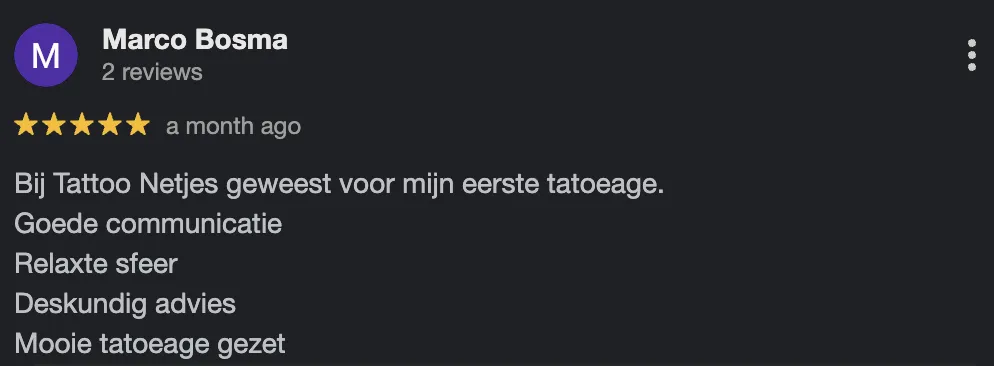 Bij Tattoo Netjes is vrijwel elke tatoeage op maat gemaakt, dus je kunt er zeker van zijn dat je een origineel ontwerp krijgt als je hier om vraagt.